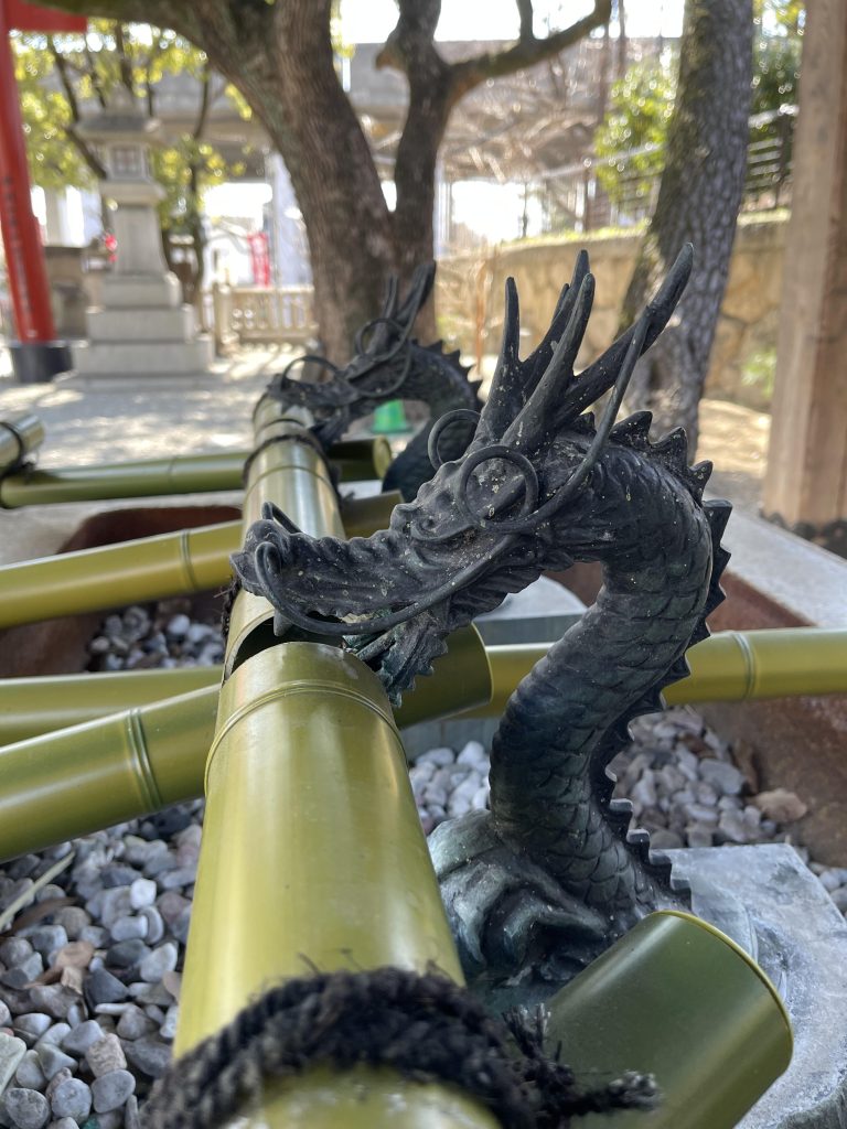 まずは、本殿の手前にある 手水舎(ちょうずや) で手と口を清めます。